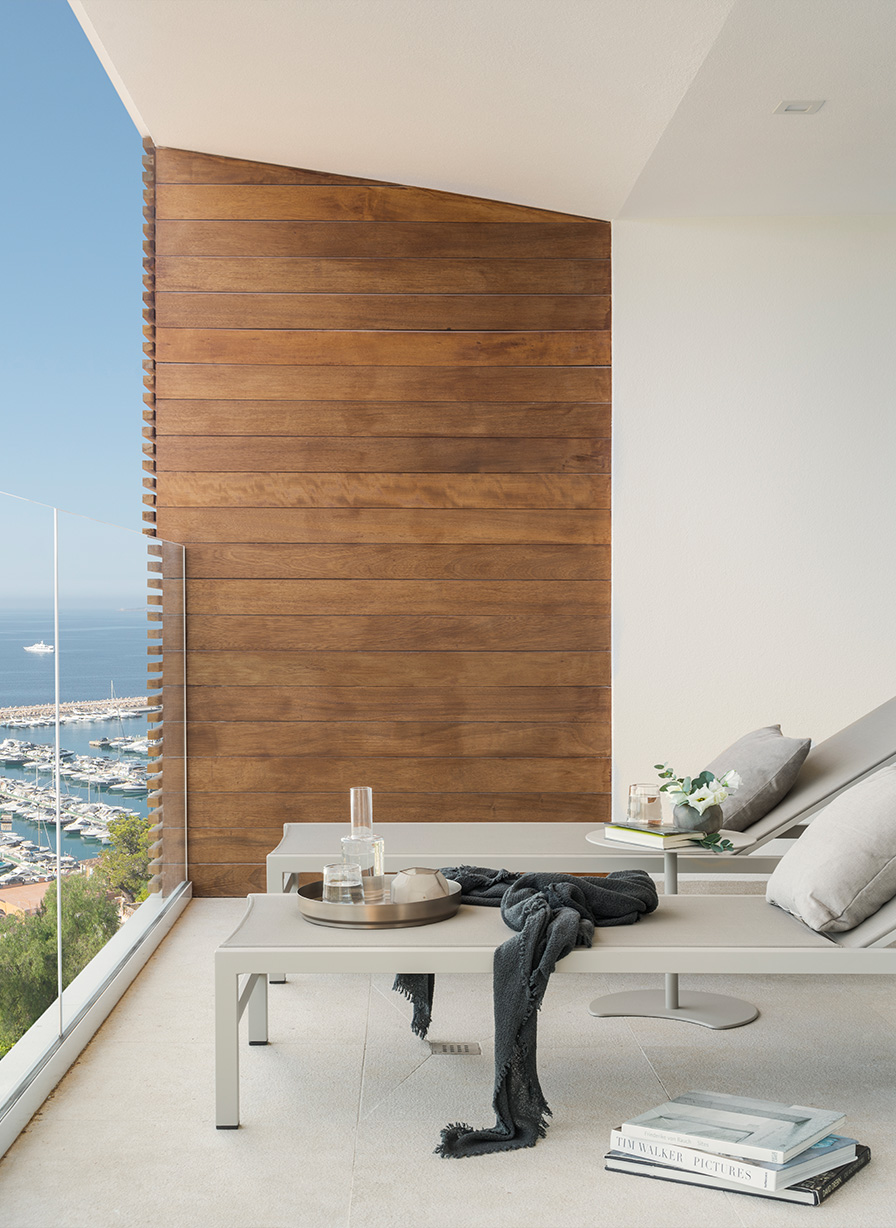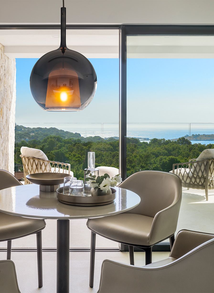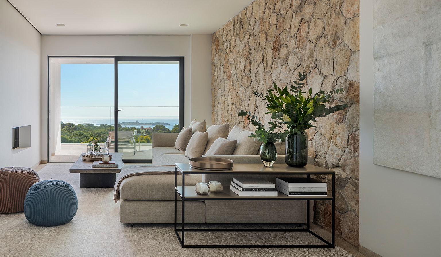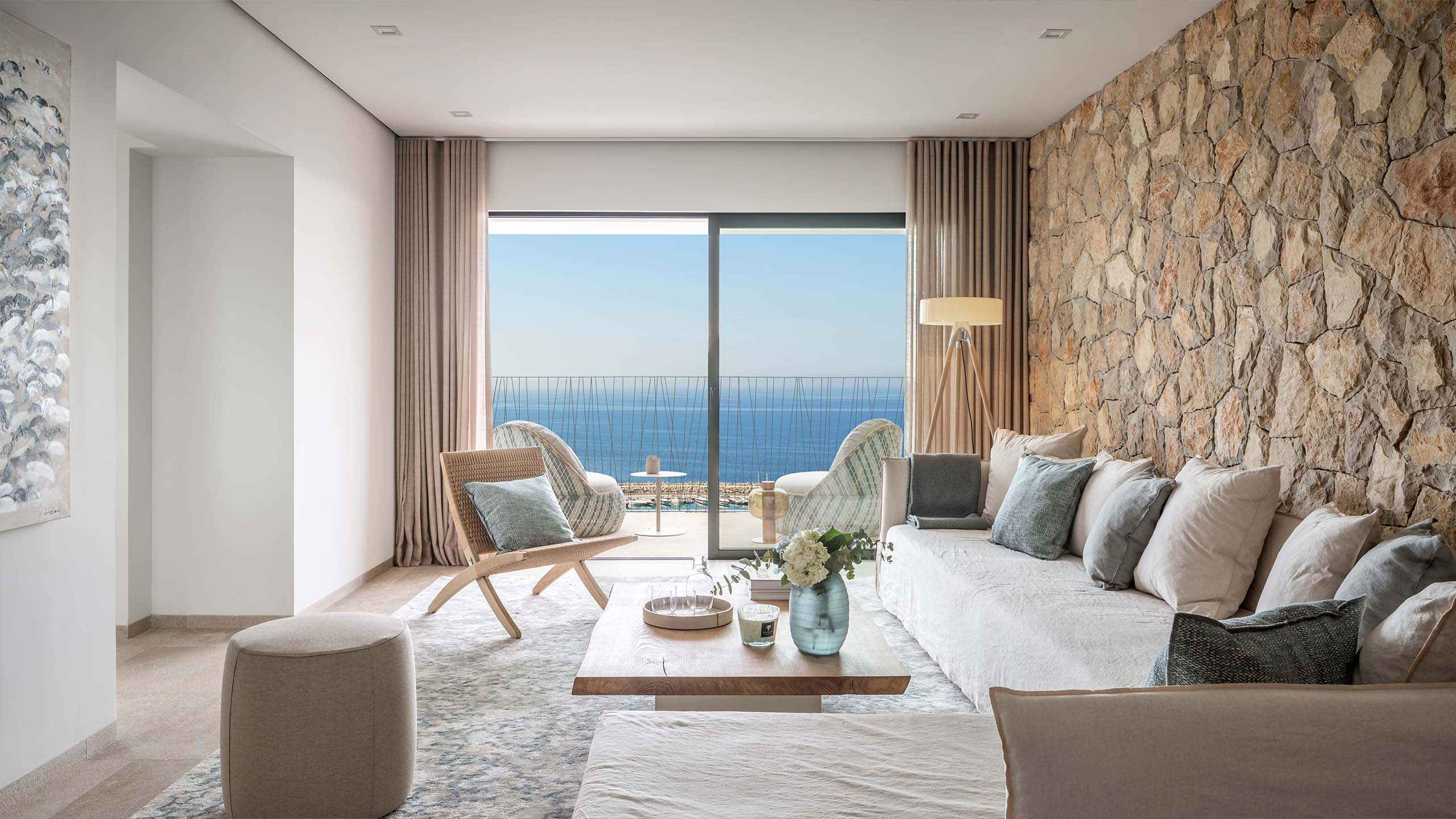Terraza Balear vertieft dieses Konzept durch eine Innenraumgestaltung, die sich auf die Bedürfnisse von Komfort, Wohlbefinden und Entspannung konzentriert. Der Gedanke, sich mit der Natur zu verbinden, inspiriert dazu, Elemente einzubauen, die ein sinnliches Erlebnis fördern.